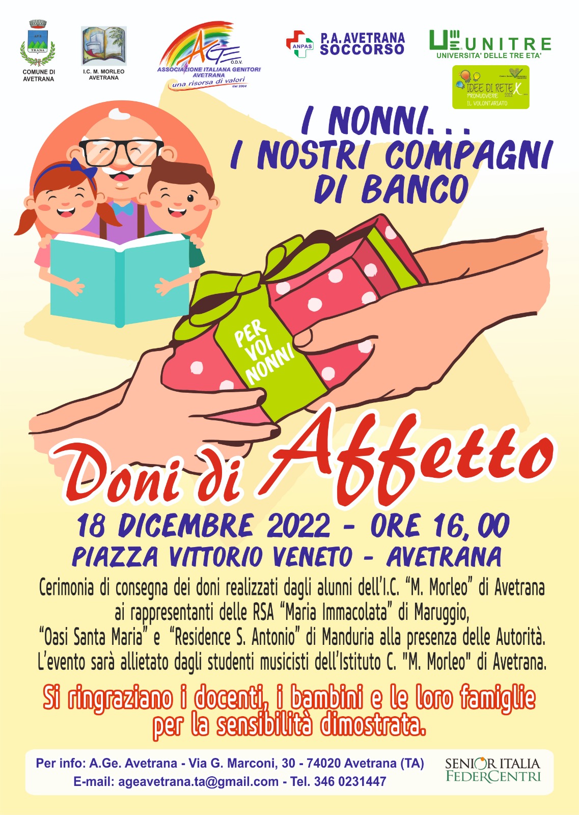 Doni di Affetto: i nonni… i nostri compagni di banco è un progetto di affettività che ha coinvolto decine e decine di bambini di Avetrana, dalle scuole materne fino alle scuole medie, e le loro famiglie.
