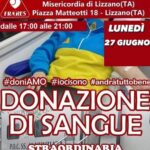 - Lunedì 27 giugno a Lizzano dalle 17:00 alle 21:00 si potrà donare il sangue presso la sede del Gruppo Donatori sangue Fratres Misericordia di Lizzano in P.zza Matteotti, 18