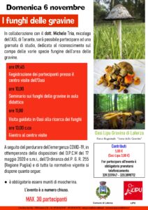 - ore 10,00 – Seminario sui funghi delle gravine in aula didattica