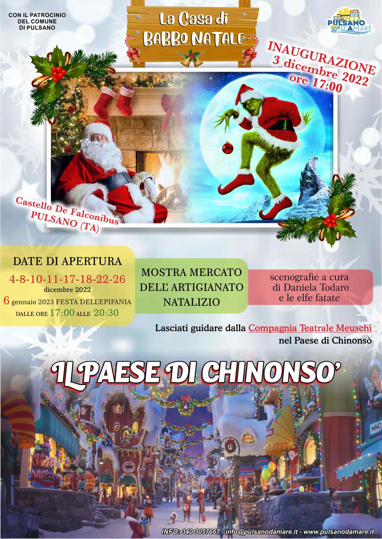 Saranno inaugurati sabato 3 dicembre alle ore 17:00 nel castello De Falconibus di Pulsano la Casa di Babbo Natale e il paese di Chinonso’.