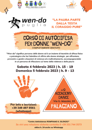 “Wen-do: autodifesa per donne” è il corso promosso e organizzato dal Centro Antiviolenza “Rompiamo il Silenzio” all’interno delle attività di sensibilizzazione che promuove sui territori in cui opera per il contrasto e la prevenzione della violenza di genere.