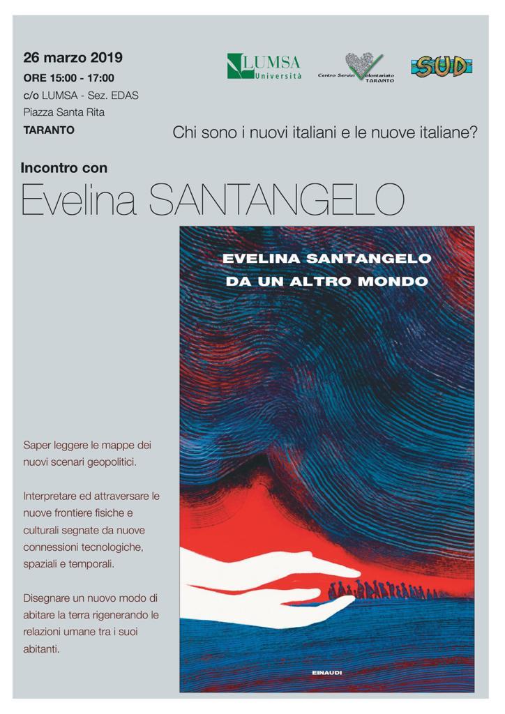 Di questo si parlerà nel corso dell’incontro con Evelina Santangelo che si terrà martedì 26 marzo dalle 15:00 alle 17:00 presso la sede LUMSA – sez. EDAS di Taranto in P.zza Santa Rita.
