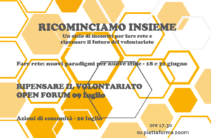 “Ricominciamo Insieme” è un ciclo di incontri finalizzati alla creazione e al rafforzamento delle reti e delle competenze necessarie ad una più efficace cooperazione all’interno del terzo settore tarantino. Il percorso ha visto già realizzarsi i suoi primi due incontri e un Open Forum, uno spazio di confronto aperto e a più voci, che si è proposto di aprire una riflessione sul futuro del volontariato e su quali trasformazioni siano necessarie in questa nuova fase di ripartenza, e a fronte delle mutate condizioni sociali.